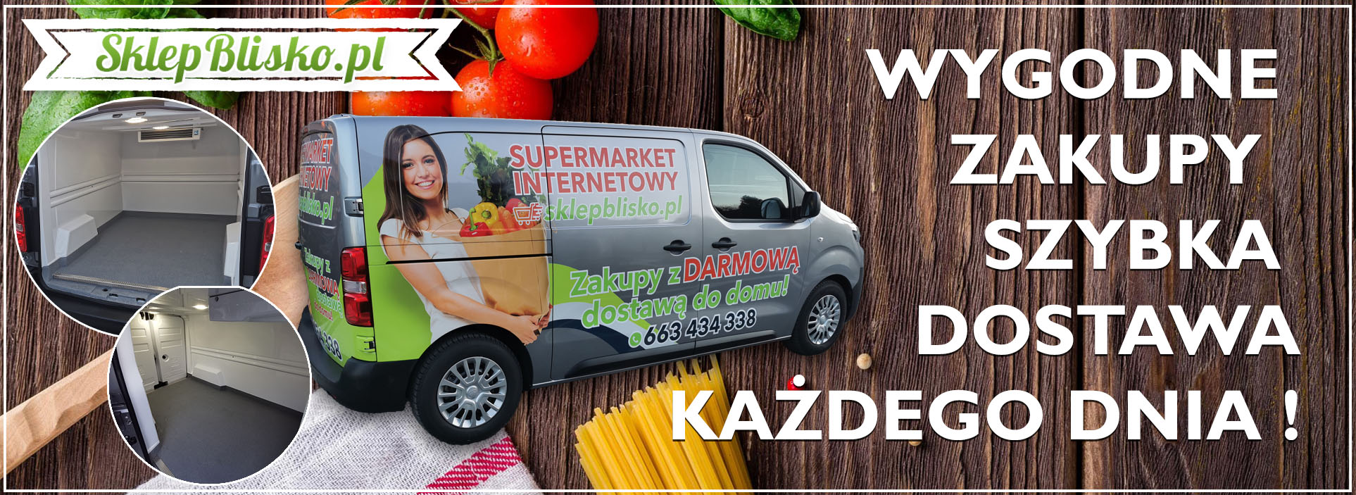 Delikatesy internetowe WWW.SKLEPBLISKO.PL oferują ponad 10000 produktów. W naszej ofercie można znaleźć szeroki wybór produktów, poczynając od słodyczy i nabiału, mrożonek oraz przetworach poprzez napoje, przyprawy a skończywszy na artykułach chemii gospodarczej czy artykułach gospodarstwa domowego. WWW.SKLEPBLISKO.PL stając naprzeciw tempa dzisiejszego świata został stworzony z myślą o wygodzie i oczekiwaniom klienta który będzie dokonywał zakupów w naszym sklepie, będzie czerpał same korzyści z zakupów oraz oczekiwał produktów zawsze świeżych jak i najwyższej jakości. Nasza firma działa w branży handlu detalicznego art. spożywczymi i przemysłowymi od 1990r dlatego kupując na WWW.SKLEPBLISKO.PL masz pewność że kupujesz u doświadczonego przedsiębiorcy dla którego zadowolenie klienta jest najważniejszą sprawą, dlatego dokładamy wszelkich starań aby realizacja transakcji przebiegała w jak najszybszym czasie i spełniała oczekiwania najbardziej wymagających klientów. Dzięki dostawom bezpośrednio od producentów i dystrybutorów oferujemy tylko oryginalne produkty w najniższych cenach. Dzięki wykwalifikowanej obsłudze sklepu oraz nowoczesnych rozwiązań informatycznych zamówienia realizowane są najszybciej jak to jest możliwe. Gwarantujemy najwyższy poziom obsługi jak i bezpieczeństwo przebiegu całej transakcji. Posiadamy własną flotę samochodów dostawczych. Dysponujemy pojazdami różnej wielkości samochodów dostawczych do 3,5 tony. Dzięki temu realizujemy dostawy zamówionych przez Ciebie towarów zawsze na czas, zarówno w obrębie Gminy Ropczyce jak i w inne miejsce w kraju. Dla naszych klientów przygotowane są różnego rodzaju promocje i gazetki dzięki temu nasza oferta jest na poziomie najtańszych hipermarketów. Aby być na bieżąco dołącz do naszego newslettera aby otrzymywać informację o aktualnych promocjach oraz śledź oficjalną stronę sklepu na Facebooku.